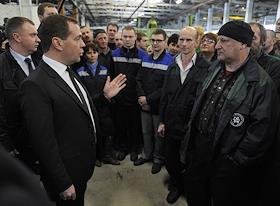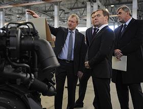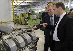 Экономика и бизнес Визит председателя правительства России Дмитрия Медведева в город Тутаев Ярославской области. посещение предприятия ОАО "Тутаевский моторный завод".