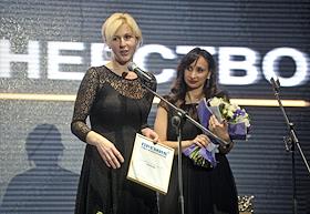 Директор по рекламе издательского дома "Коммерсантъ" Джамиля Зуауи (справа) во время церемонии…