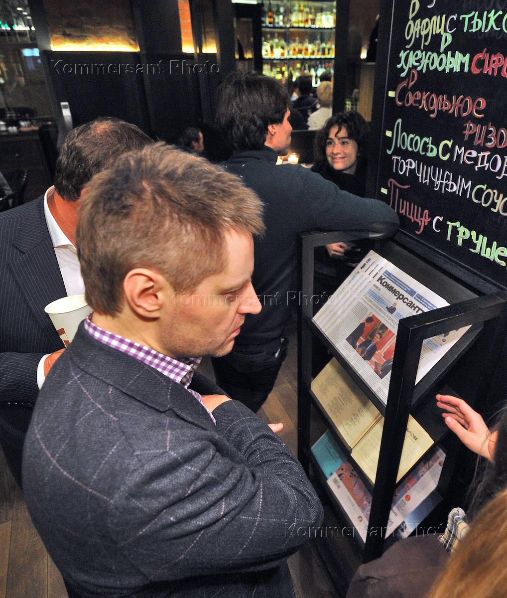 Жанровая фотография. Газета "Коммерсантъ" на стойке со свежей прессой в кафе кинотеатра "Пионер".