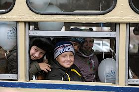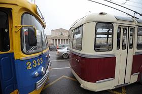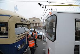 Проезд колонны ретро-троллейбусов от 1-го Троллейбусного парка до Театральной площади.