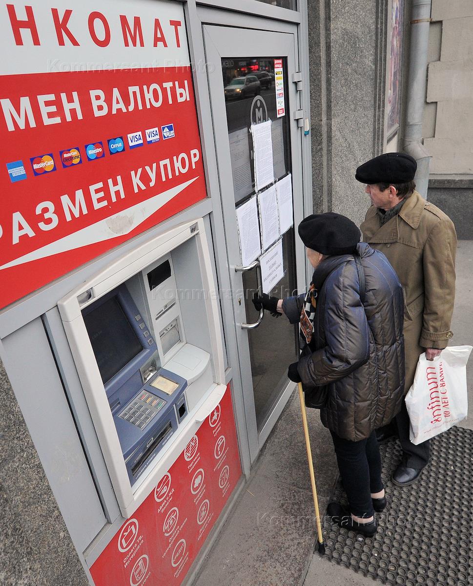 Клиенты у отделения "Мастер-банка" на Тверской улице.