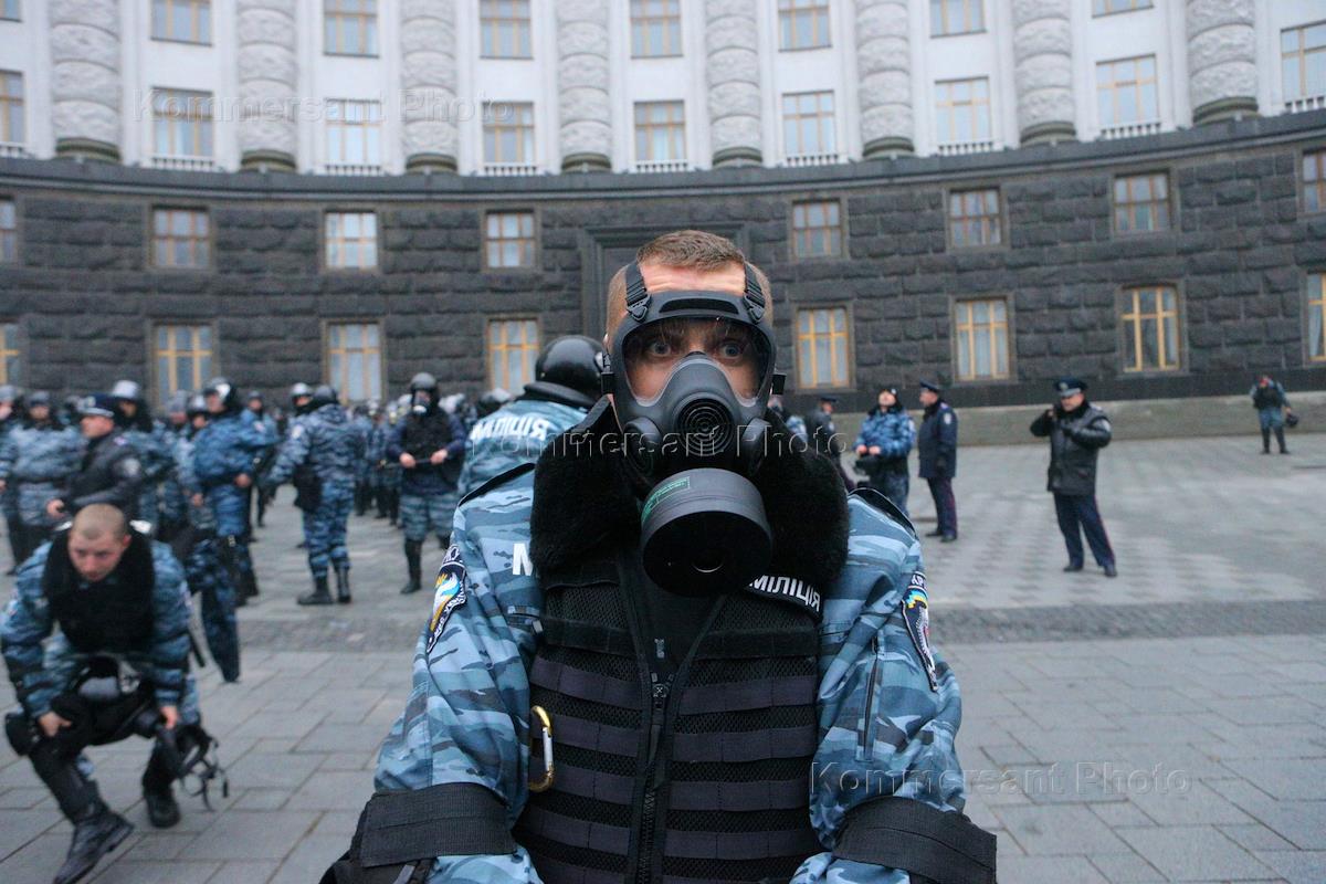 ЕвроМайдан. Столкновение между правоохранителями и участниками вече возле здания Кабмина.