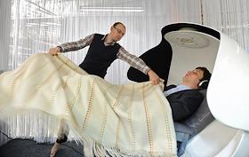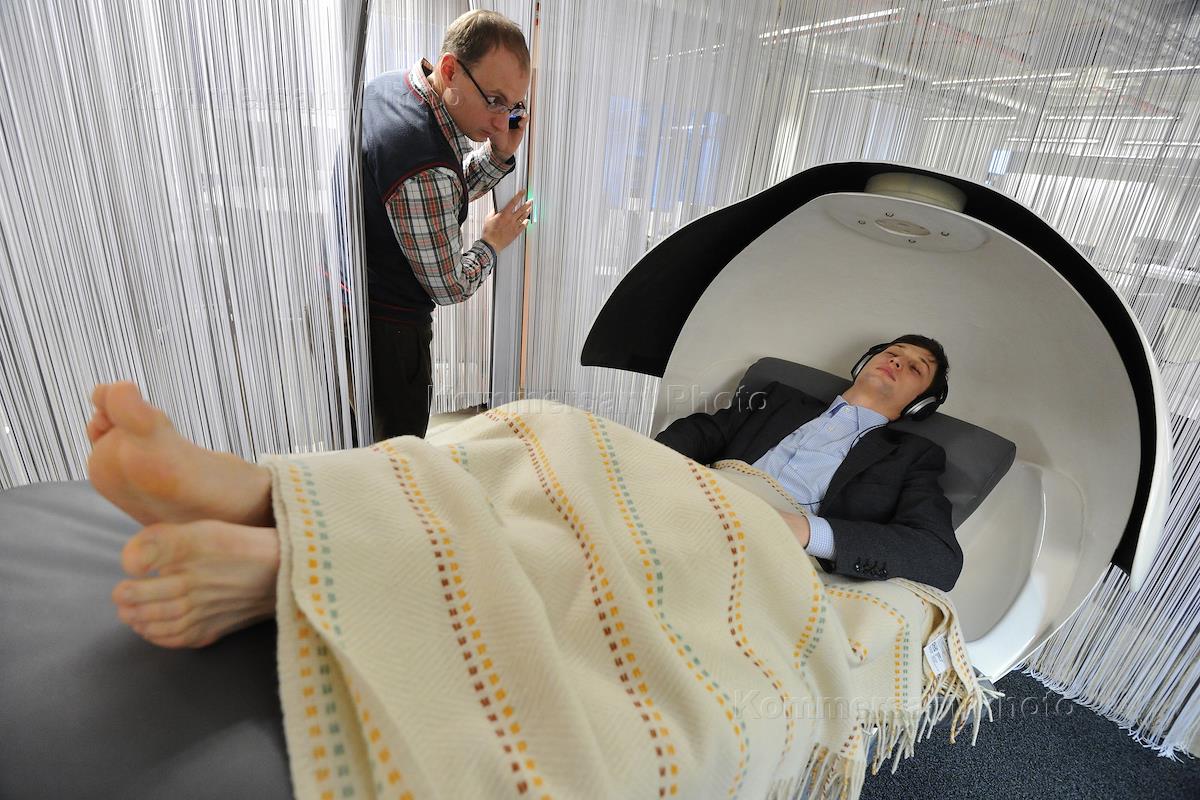 Генеральный директор Energy Point Алексей Винокуров и Роман Масленников в капсулах для сна.