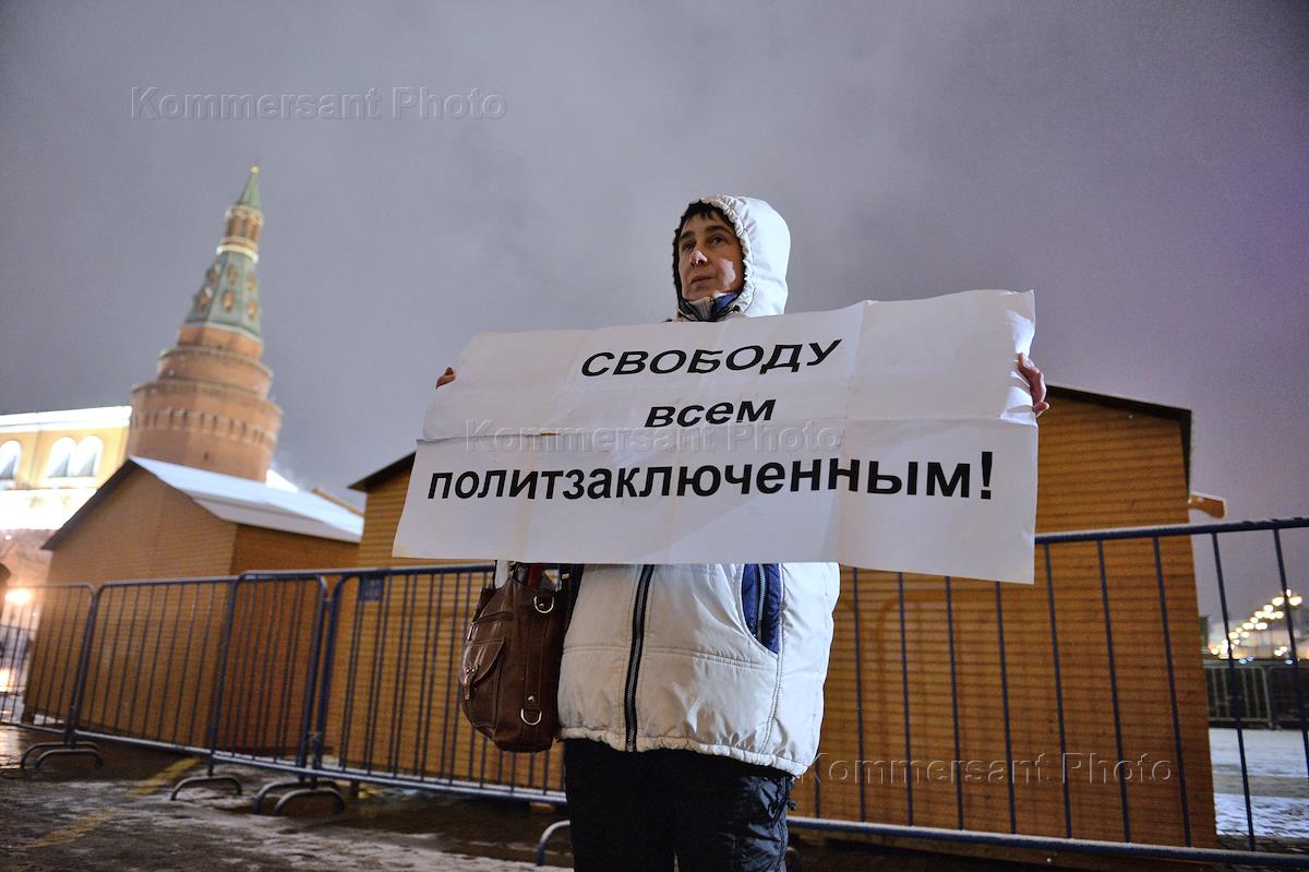Акция в знак поддержки "узников Болотного дела". Одиночные пикеты на Манежной площади.