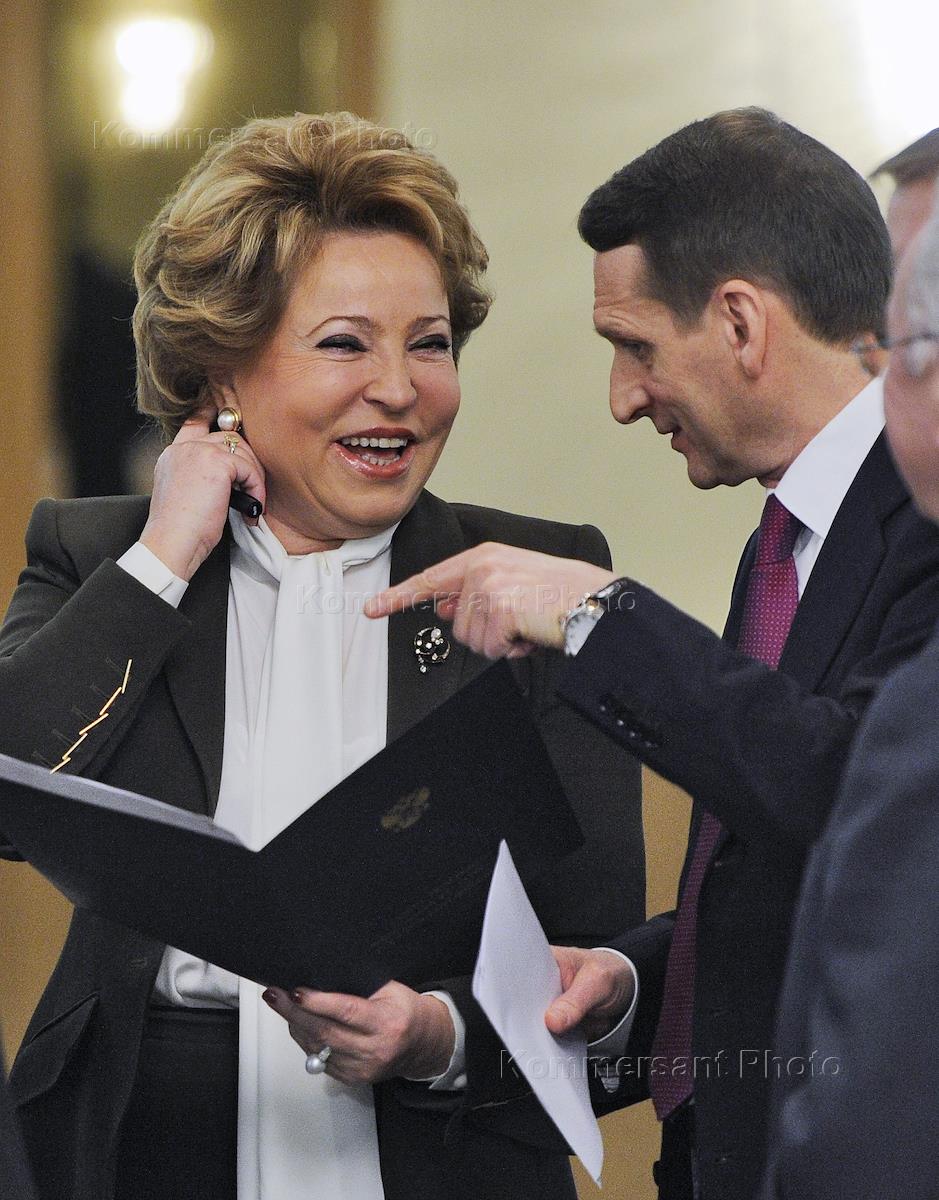 Председатель Совета Федерации России Валентина Матвиенко (слева) и председатель Государственной думы…