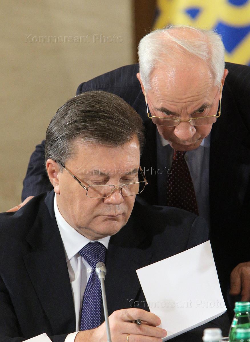 Президент Украины Виктор Янукович (слева) и премьер-министр Украины Николай Азаров (справа) на…