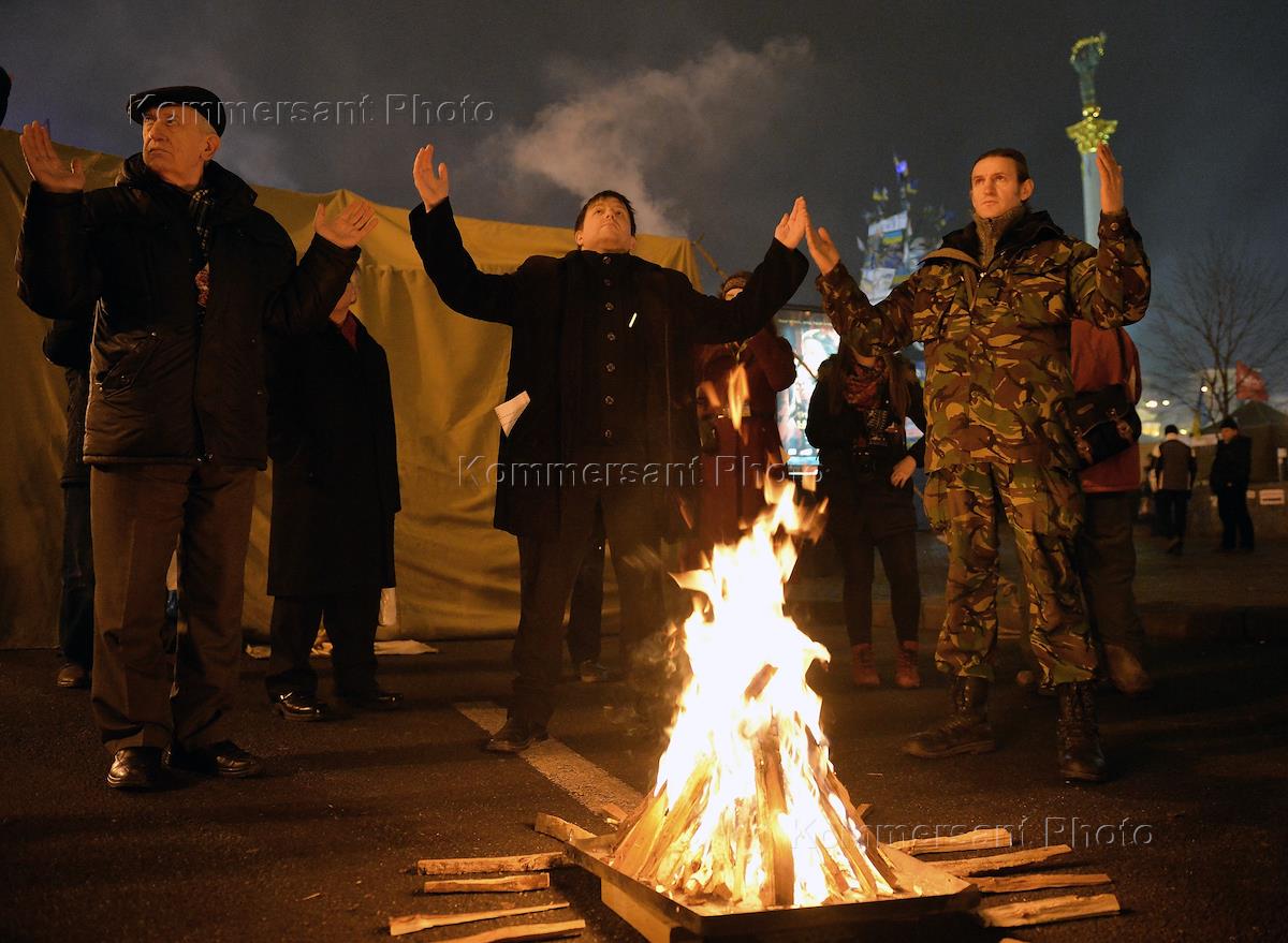 Евромайдан. Акции сторонников евроинтеграции Украины на площади Независимости. Люди вокруг костра.