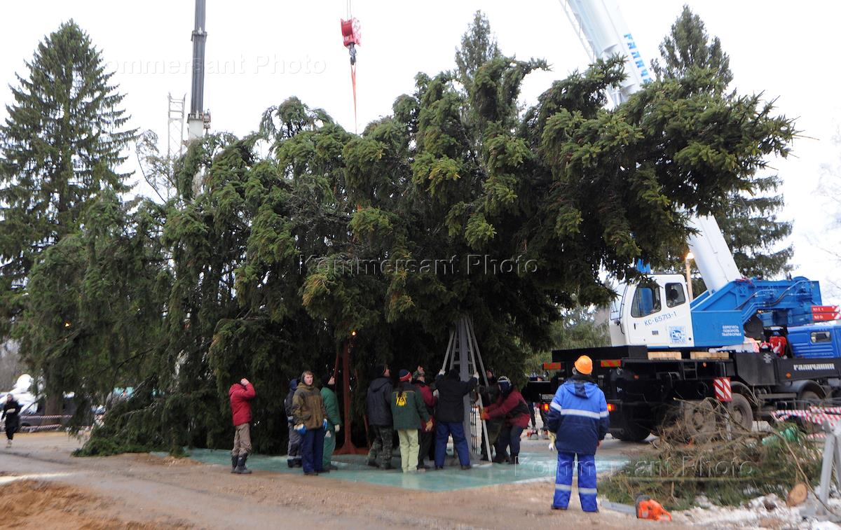 Вырубка и транспортировка главной елки России в Наро-Фоминском лесничестве рядом с городом Верея.