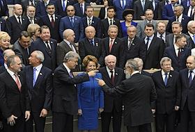 Председатель Совета Федерации России Валентина Матвиенко (в центре) и ее заместители Ильяс Умаханов…