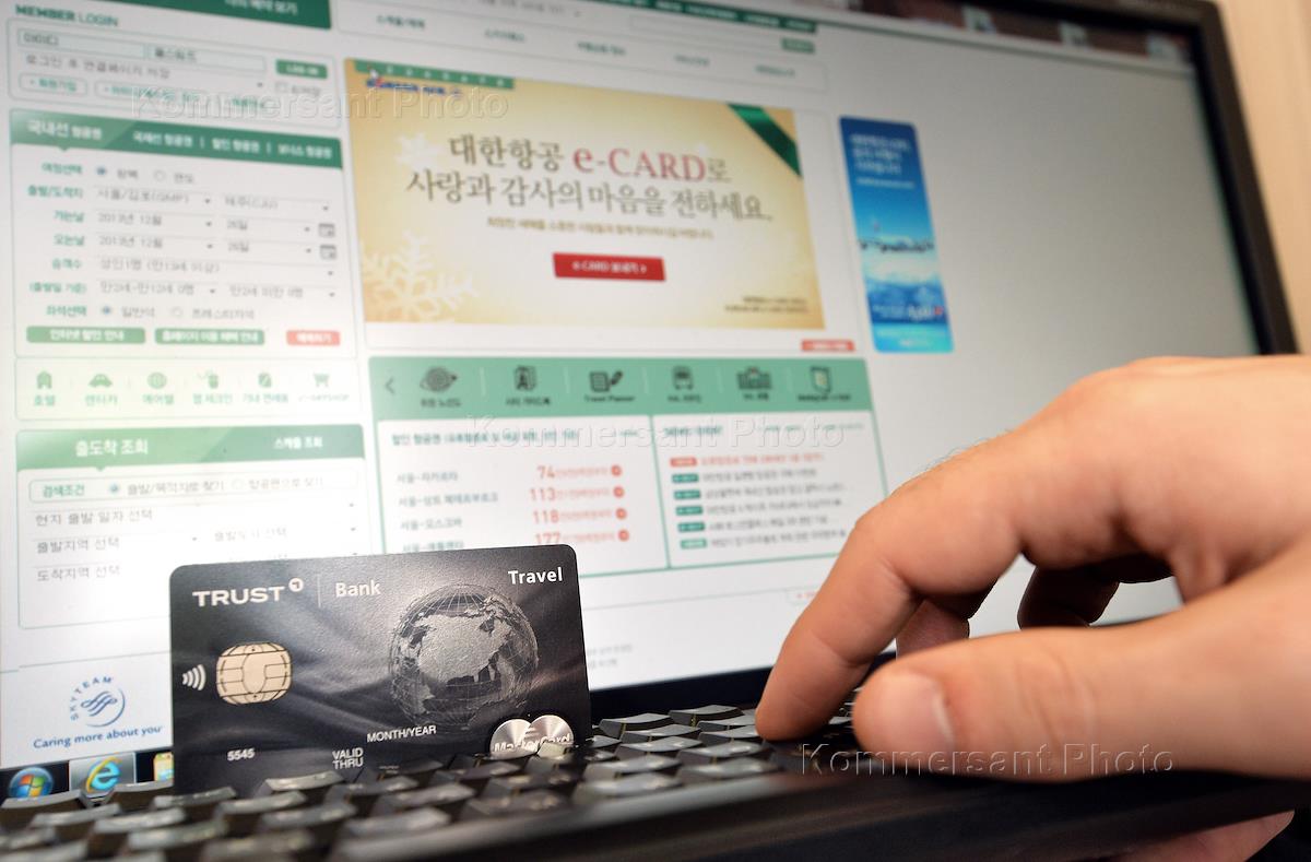 Жанровая фотография. Кредитная карта банка "Траст". Покупки через интернет.