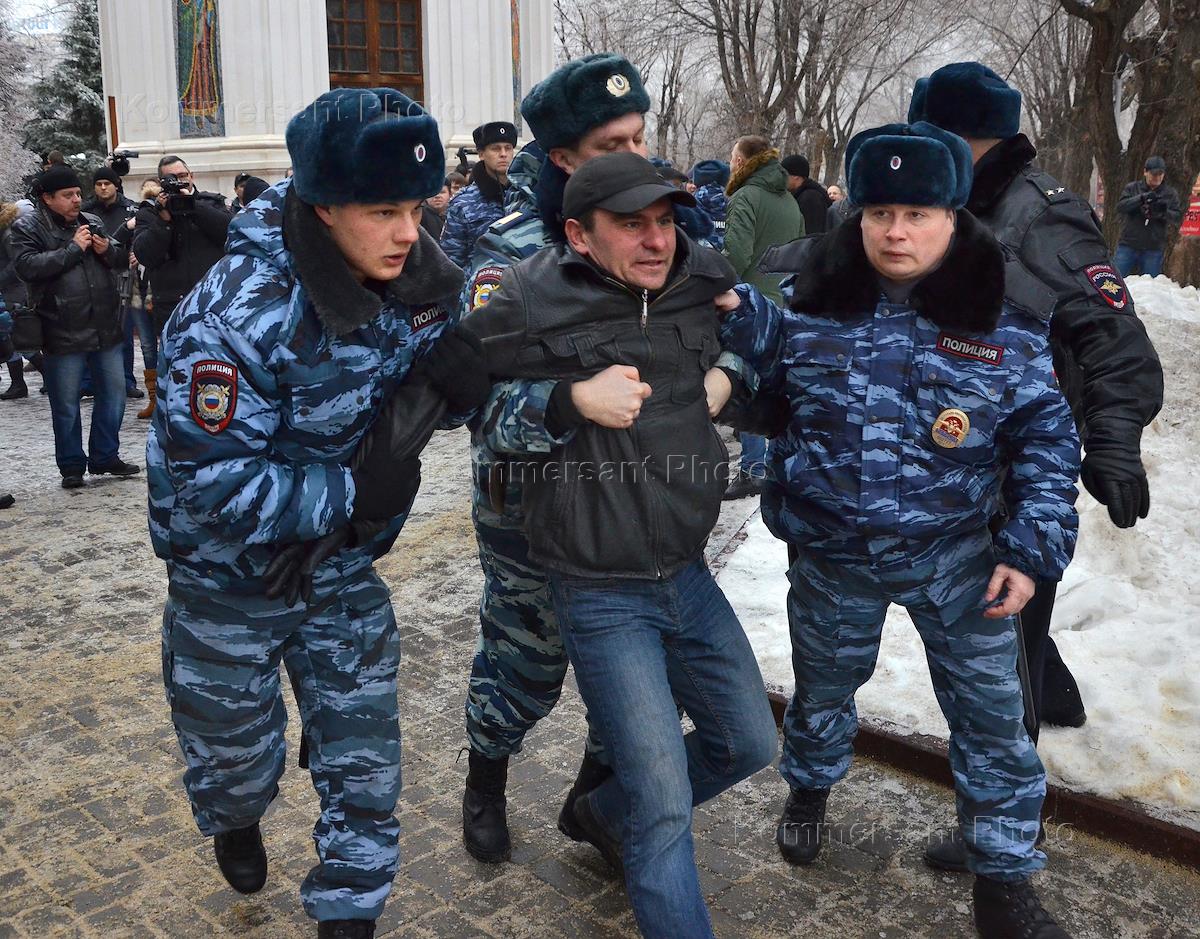 Сотрудники полиции задерживают участников «Народного схода» в Волгограде.