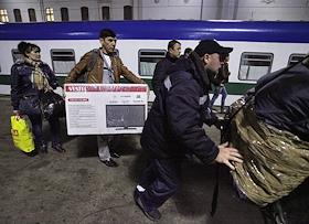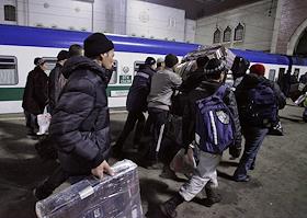 Пассажиры перед отправлением поезда "Москва-Ташкент" на Казанском вокзале.