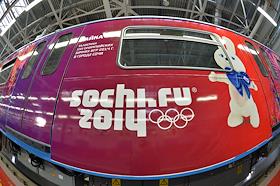 Электропоезд с символикой зимней олимпиады "Сочи 2014" в электродепо Братеево.