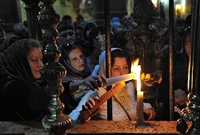 Виды Иерусалим. Храм Гроба Господня (Иерусалимский храм Воскресения Христова). Женщины зажигают…