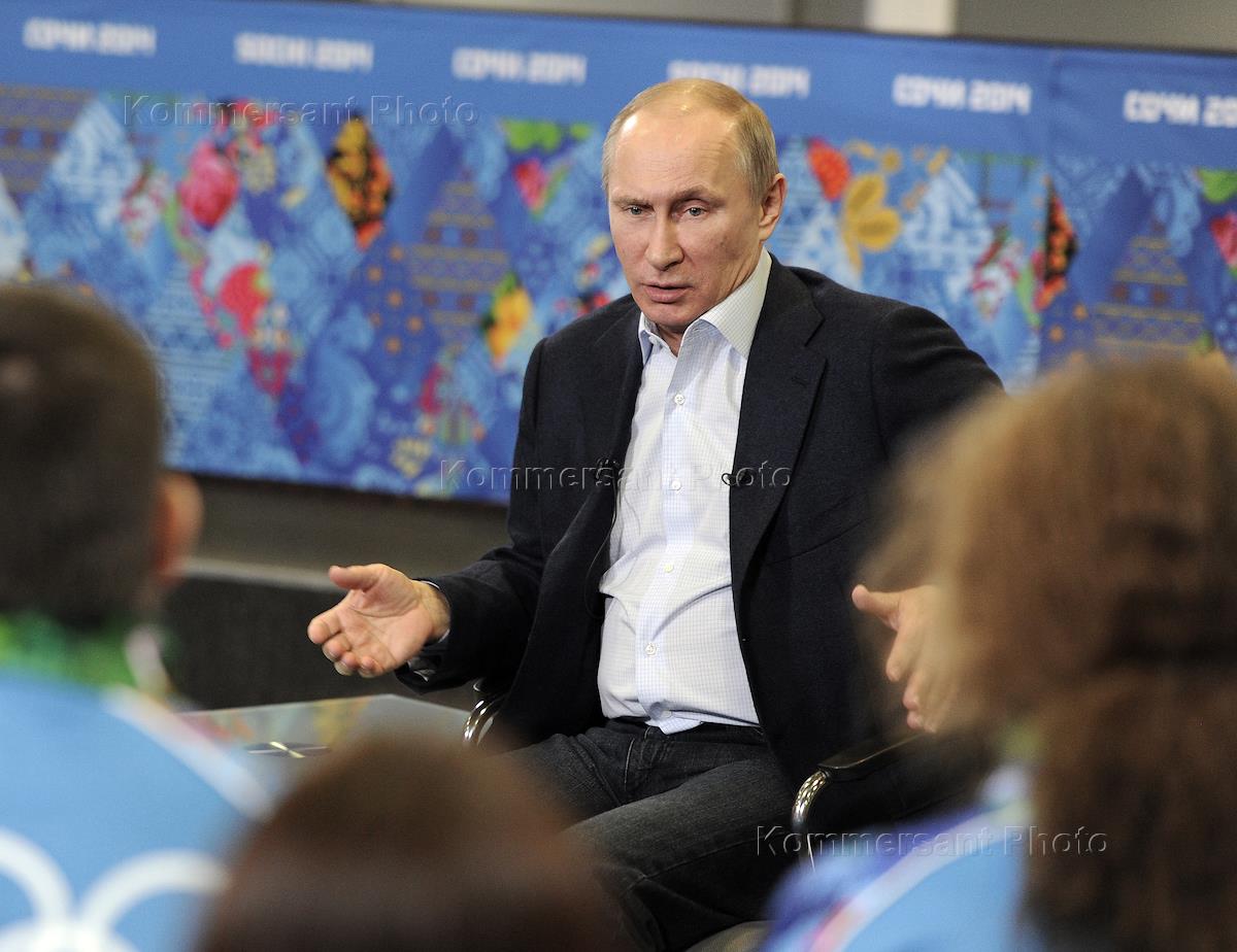 Политика Визит Президента России Владимира Путина в Сочи. Встреча Владимира Путина с волонтерами, участвующими в подготовке и проведении XXII Олимпийских и XI Паралимпийских зимних игр 2014 года.