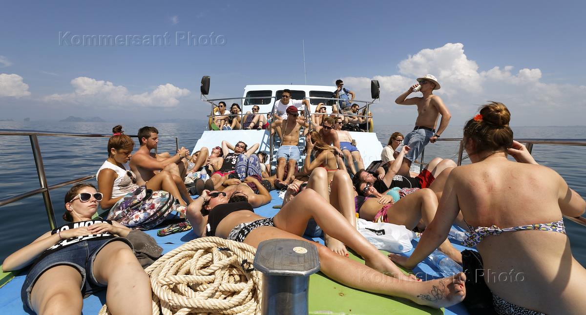 Остров Ко Пани (Ko Panyi). Туристы во время прогулки на морском катере.