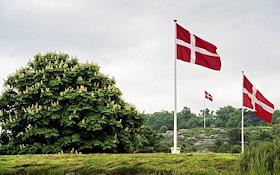 Остров Борнхольм. Флаги Дании на зеленой лужайке.