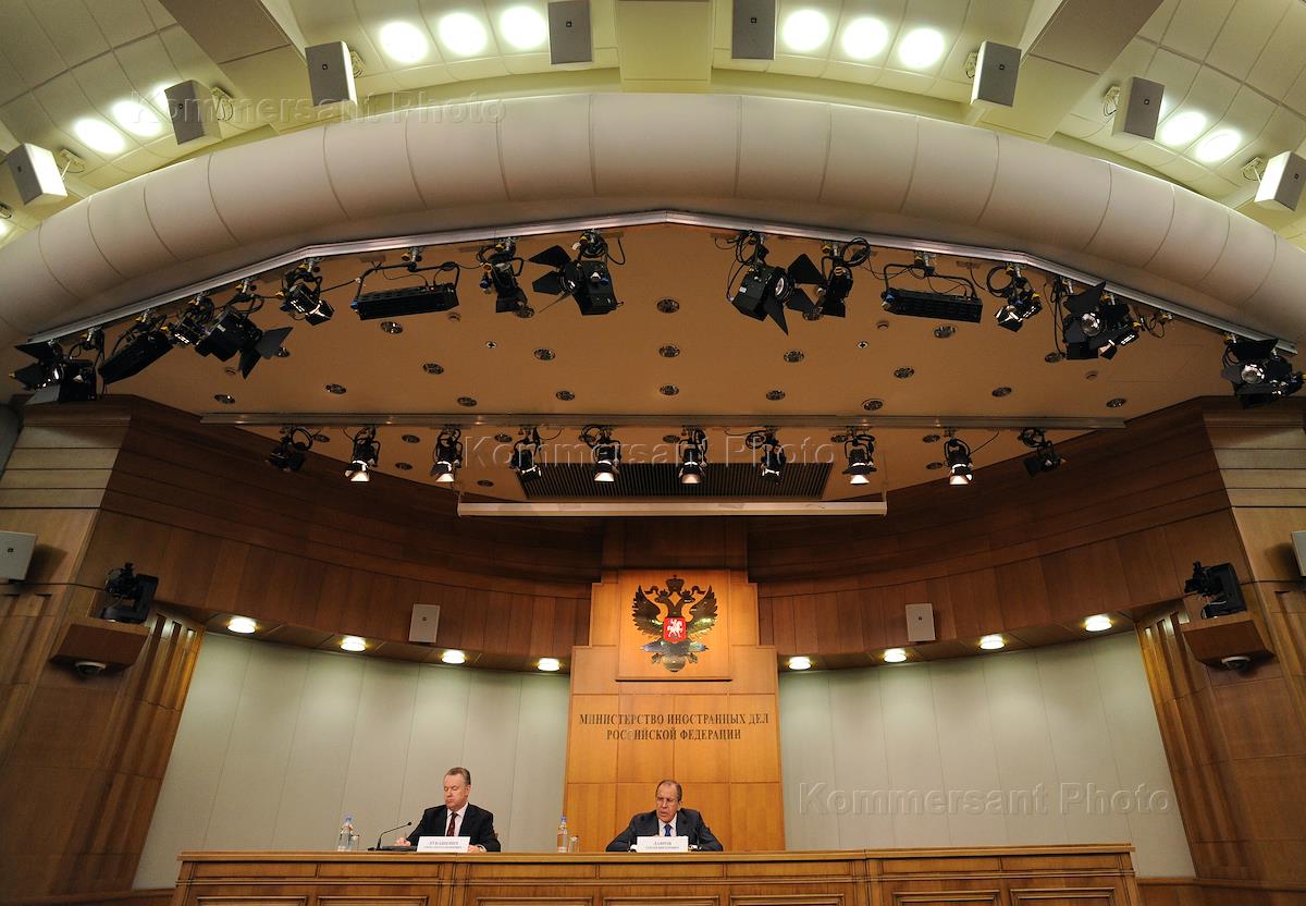 Директор Департамента информации и печати МИД России Александр Лукашевич (слева) и министр…