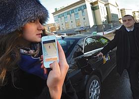 Жанровая фотография. Девушка во время пользования сервисом по заказу такси GetTaxi.