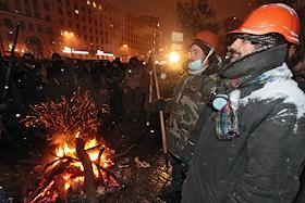 Евромайдан. Улица Грушевского вечером 21 января.