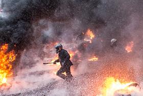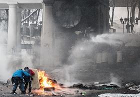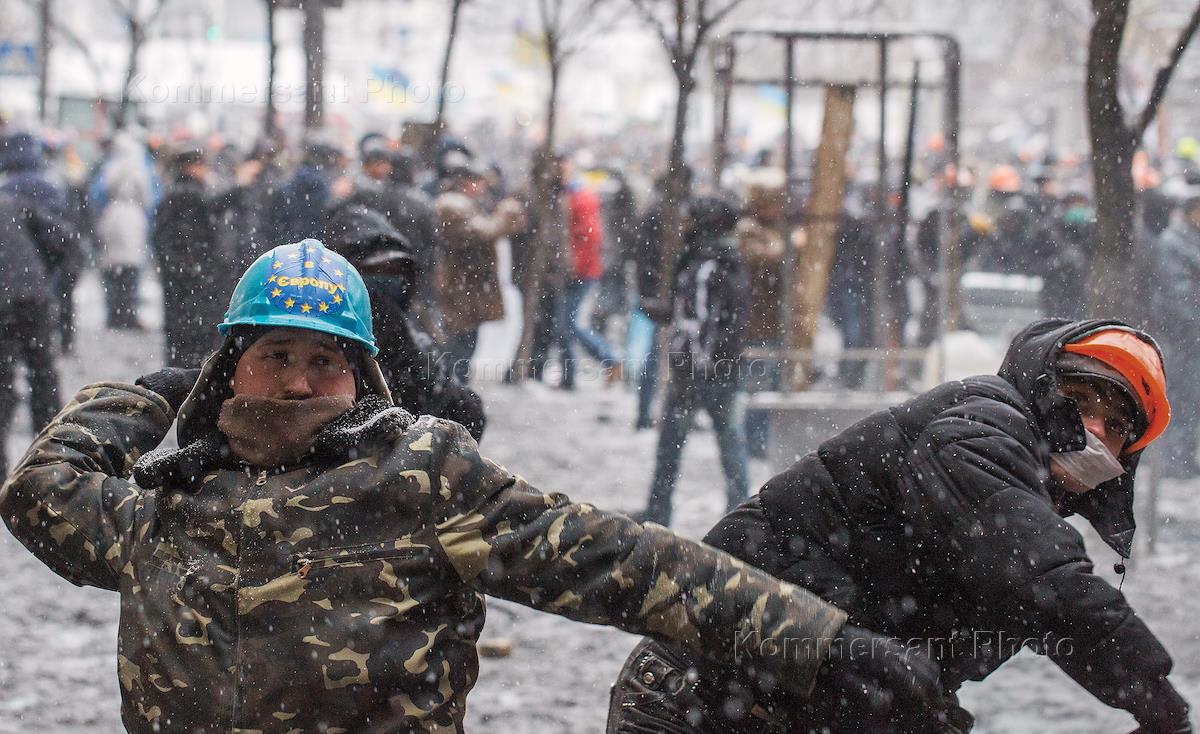Участники акций в поддержку евроинтеграции Украины на улице Грушевского в Киеве.
