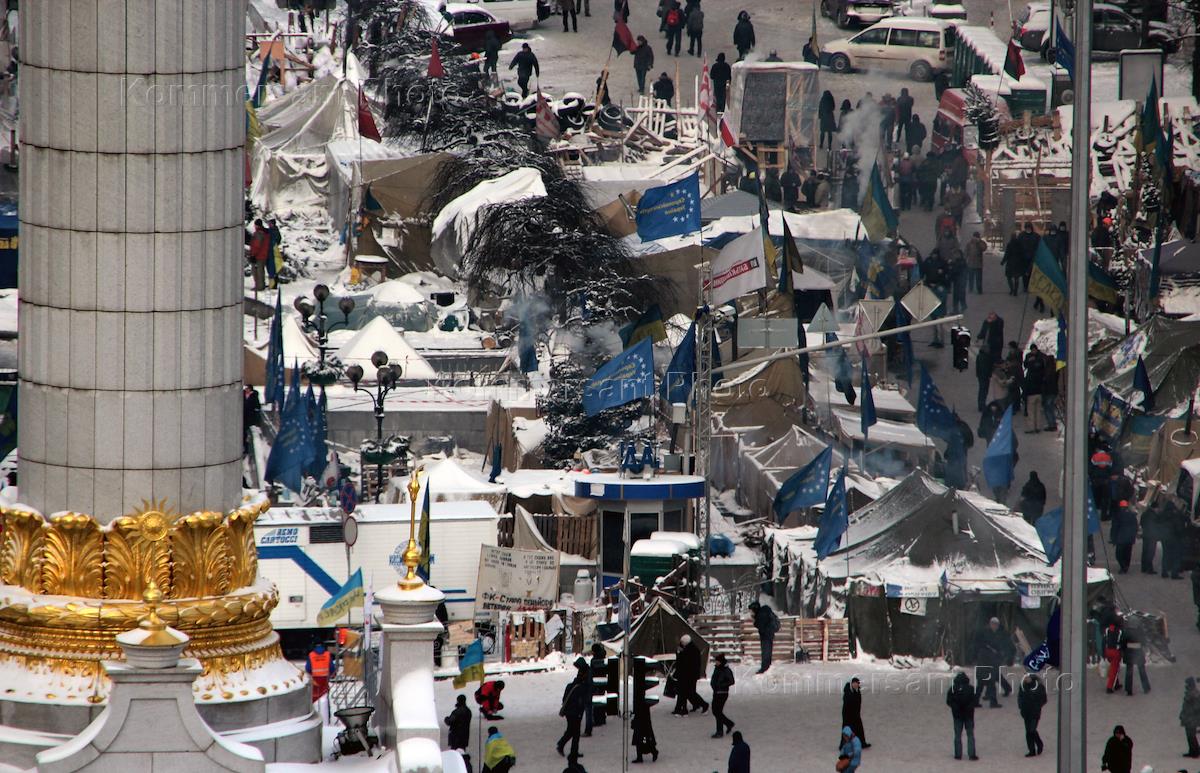 Евромайдан. Палаточный лагерь оппозиции на майдане Незалежности (площадь Независимости).