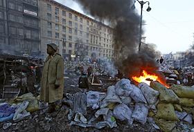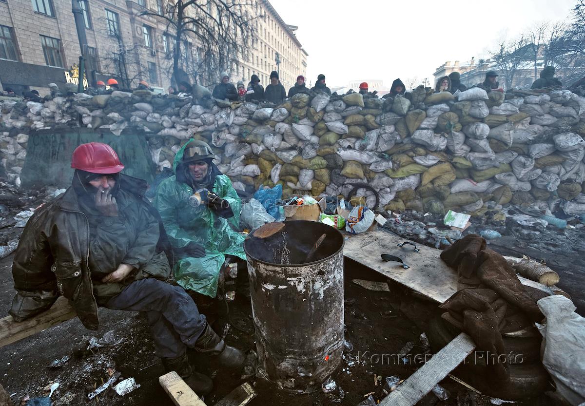 Евромайдан. Участники протестных акций на улице Грушевского у стадиона "Динамо" имени В.Лобановского.