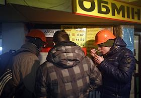 Евромайдан. Участники протестных акций у пункта обмена валют.