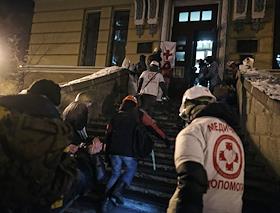 Евромайдан. Участники протестных акций в здании Культурно-делового центра "Украинский дом", в…