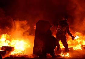 Евромайдан. Беспорядки в Киеве. Противостояние участников акций в поддержку евроинтеграции Украины и…