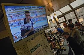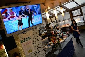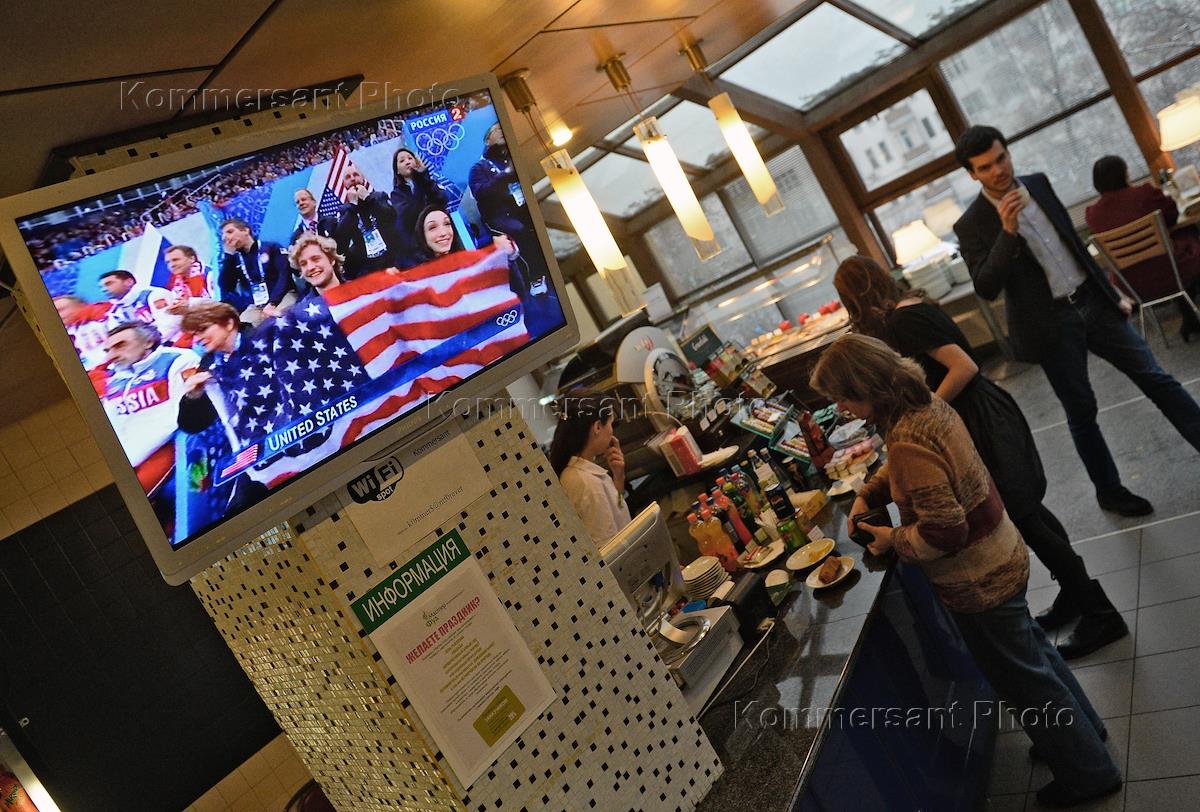 Издательский дом (ИД) "Коммерсантъ". Журналисты смотрят трансляцию соревнований по фигурному катанию…