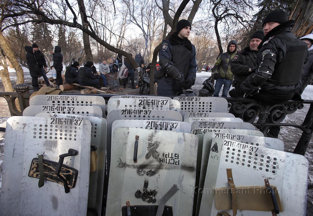 Евромайдан. Сотрудники правоохранительных органов во время охраны правительственного квартала.