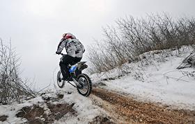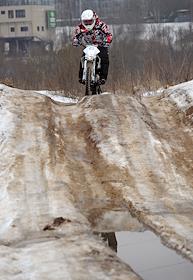 Мотогонщик Александр Самойлов во время тест-драйва мотоцикла AVM TT152E.
