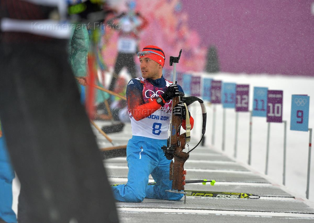 XXII Зимние Олимпийские игры в Сочи. Биатлон. Масс-старт 15 км. Мужчины. Член сборной команды России…