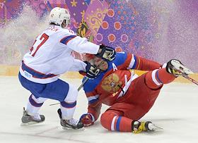 XXII Зимние Олимпийские игры в Сочи. Член олимпийской сборной России Александр Радулов (слева) во…