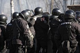 Противостояние на углу Институтской и Шелковичной. Милиция.