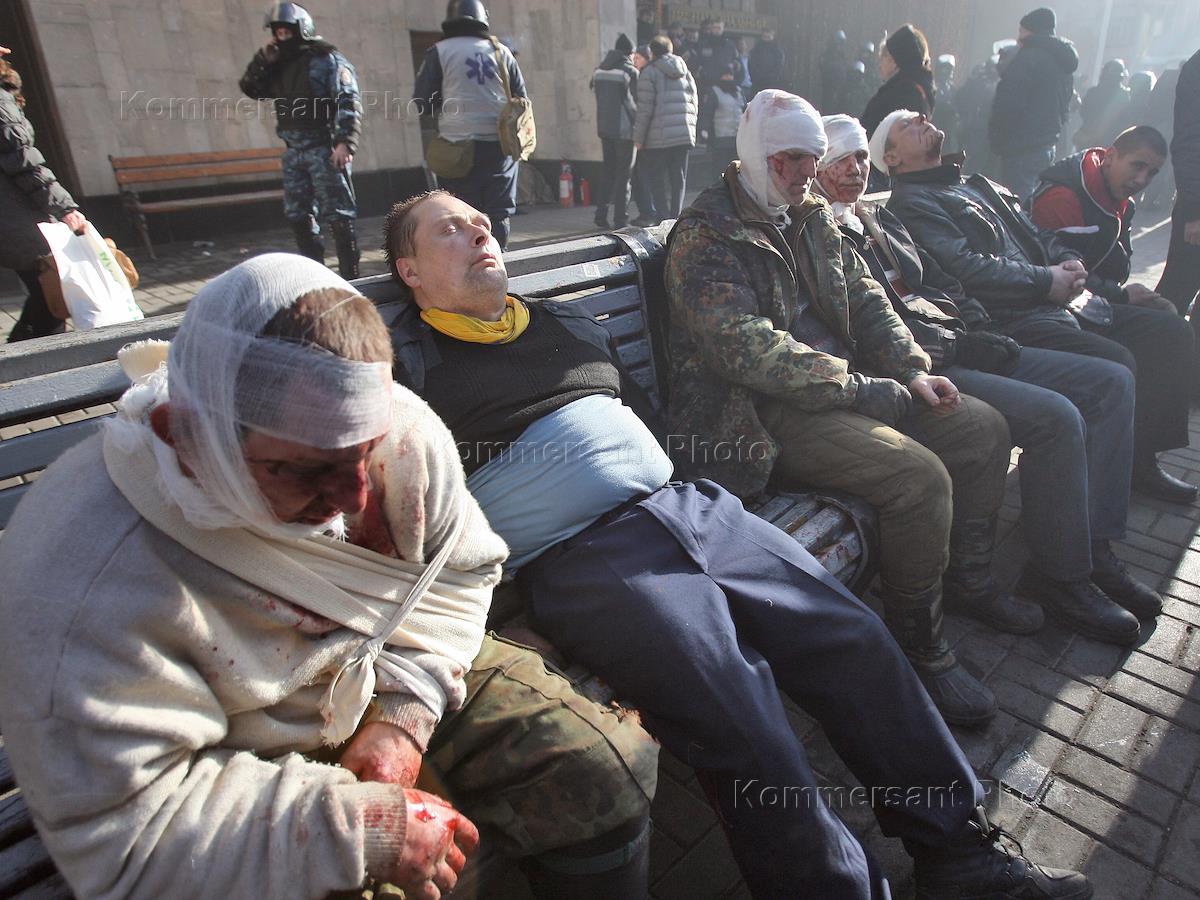Политическая ситуация в Киеве. Пострадавшие в ходе беспорядков в центре Киева.