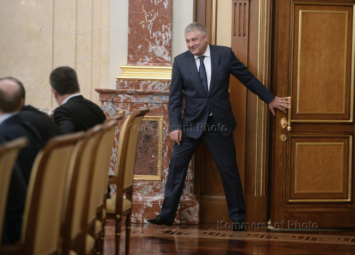 Министр внутренних дел России Владимир Колокольцев перед началом заседания правительства России.