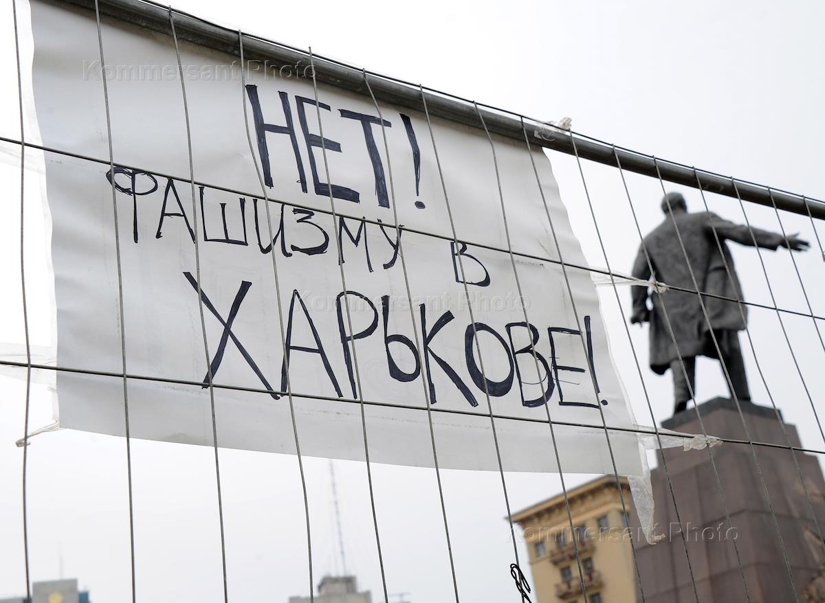 Политическая ситуация в Харькове. Митинг у здания Харmковской городской Рады. Плакат с надписью…