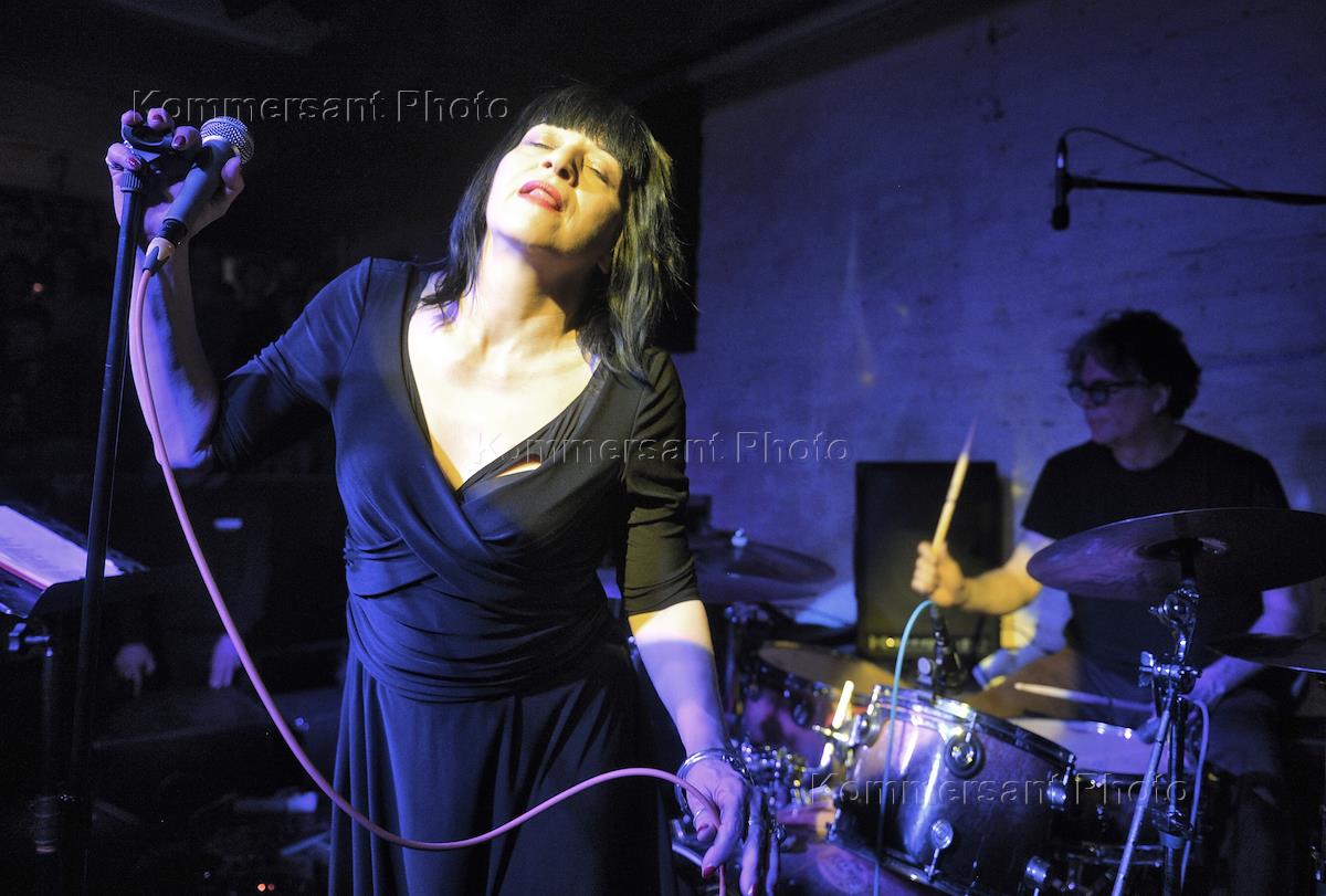 Американская певица Лидия Ланч во время выступления с концертом в клубе Manifest.