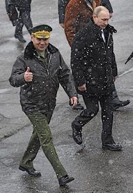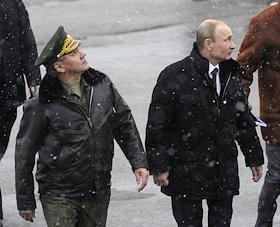 Министр обороны России Сергей Шойгу (слева) и президент России Владимир Путин (справа) во время…