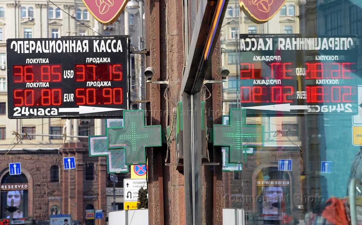 Жанровая фотография. Курс валют. Отражение электронного информационного табло пункта обмена валют в…