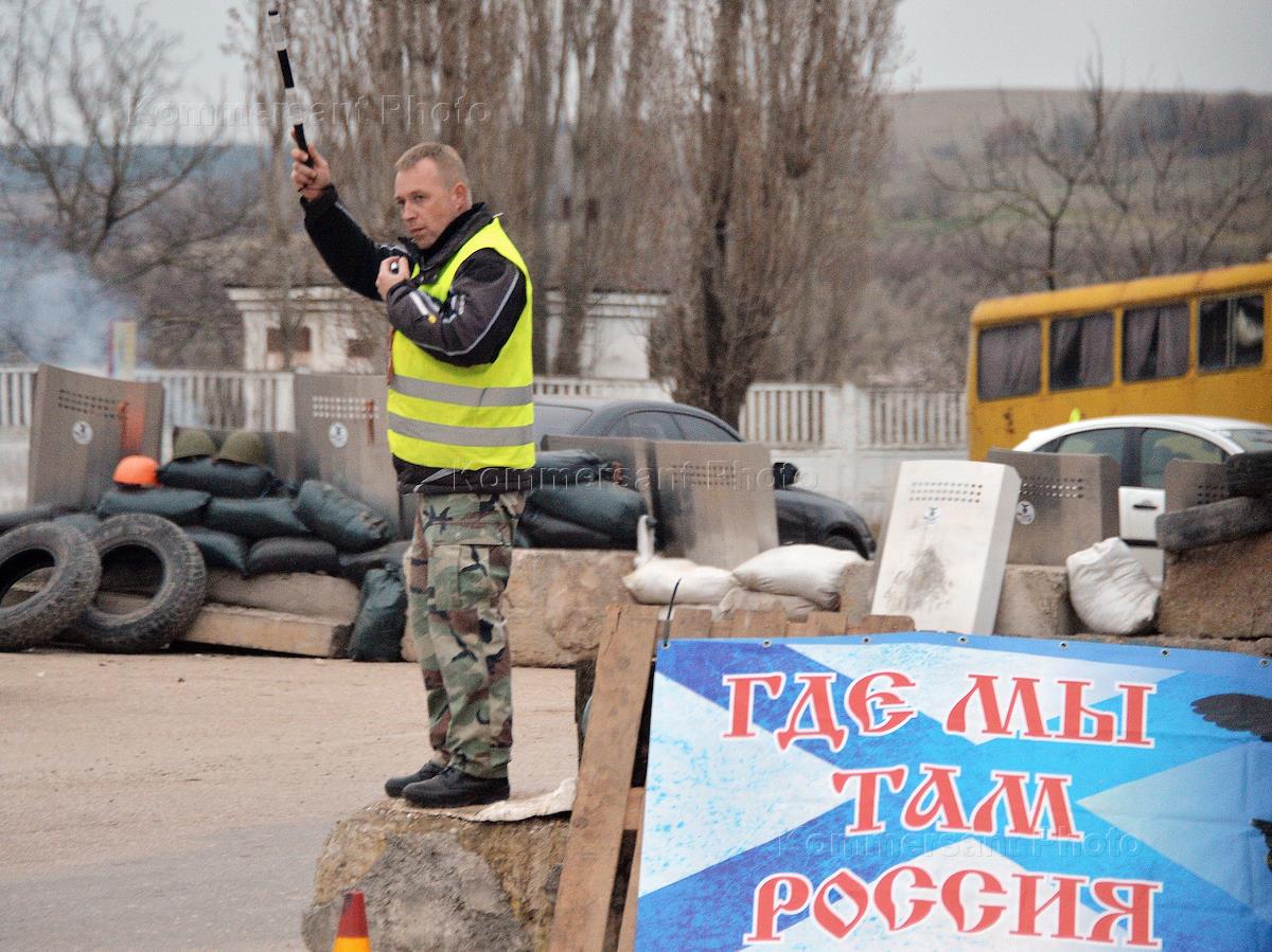 Политическая ситуация в Крыму. Регулировщик движения у Зенитно-ракетного полка тактической группы…