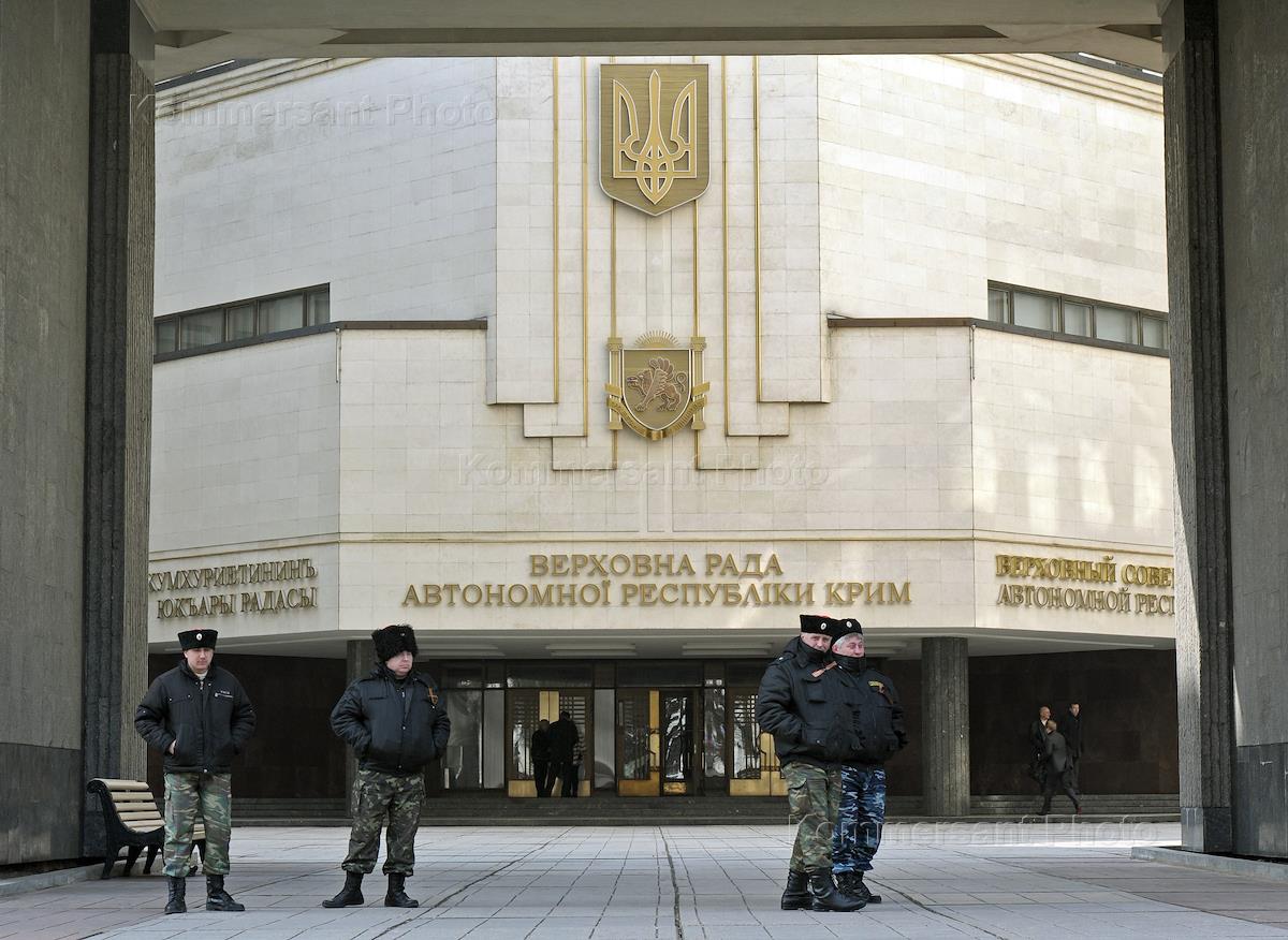 Крымские казаки у здания Верховного Совета Автономной Республики Крым.
