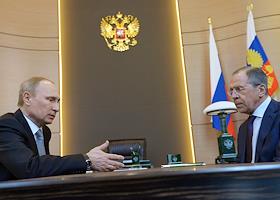 Встреча президента России Владимира Путина с главой МИД РФ Сергеем Лавровым в Сочи.