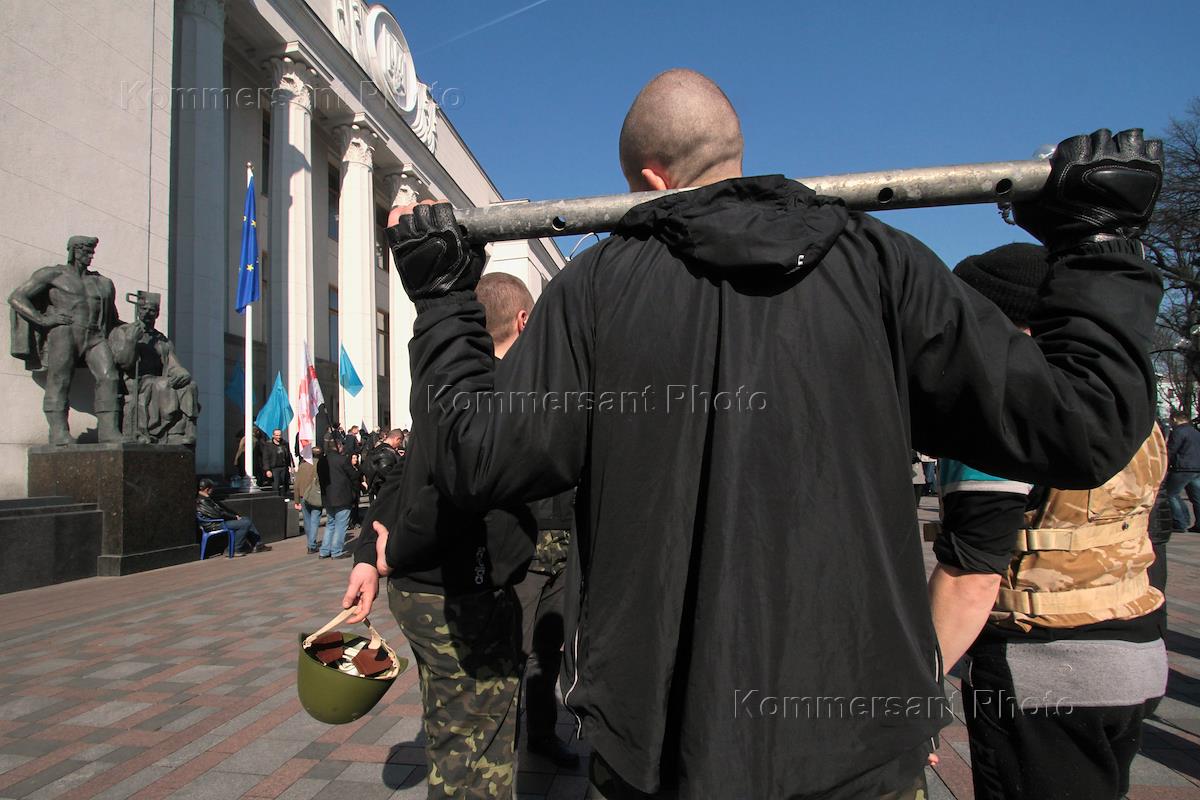 У входа в здание Верховной Рады Украины собрались люди в камуфляже, которые требуют от парламента…