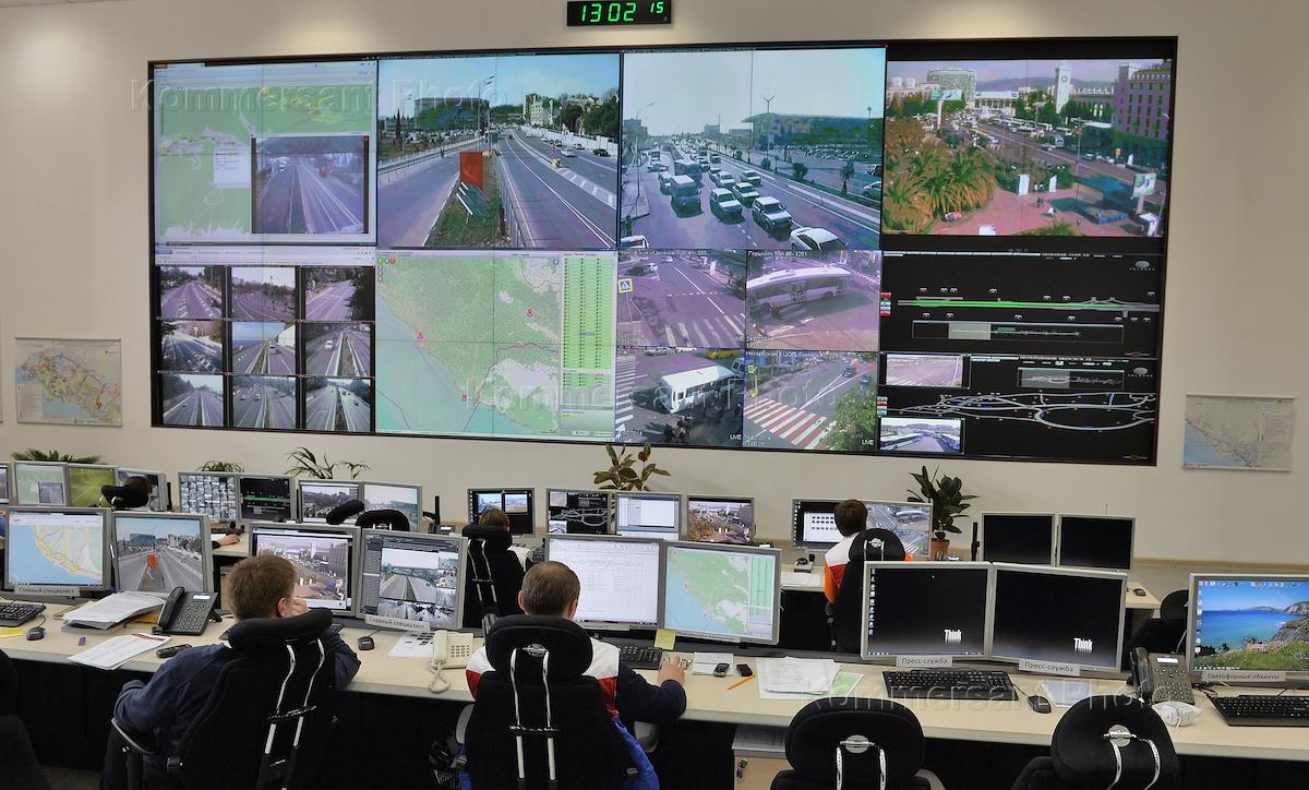 Логистический транспортный центр в Сочи. Сотрудники центра за диспетчерскими пультами.