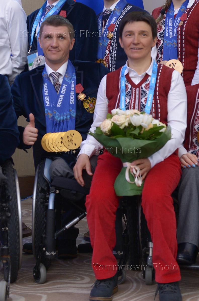XI Зимние Паралимпийские игры Сочи 2014. Члены сборной России слева направо: Марат Романов, Оксана…