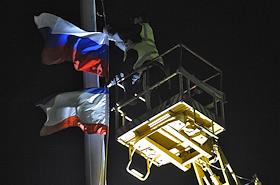 Референдум о статусе Автономной республики Крым (АРК). Люди вещают Государственный флаг Крыма и…