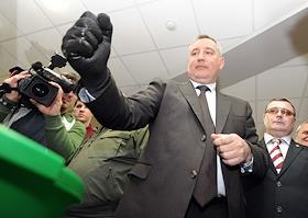 Заместитель председателя правительства России Дмитрий Рогозин (в центре) во время посещения…